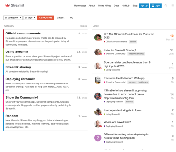 Streamlit is more than just a way to make data apps, it’s also a community of creators that share their apps and ideas and help each other make their work better. Please come join us on the community forum. We love to hear your questions, ideas, and help you work through your bugs — stop by today!